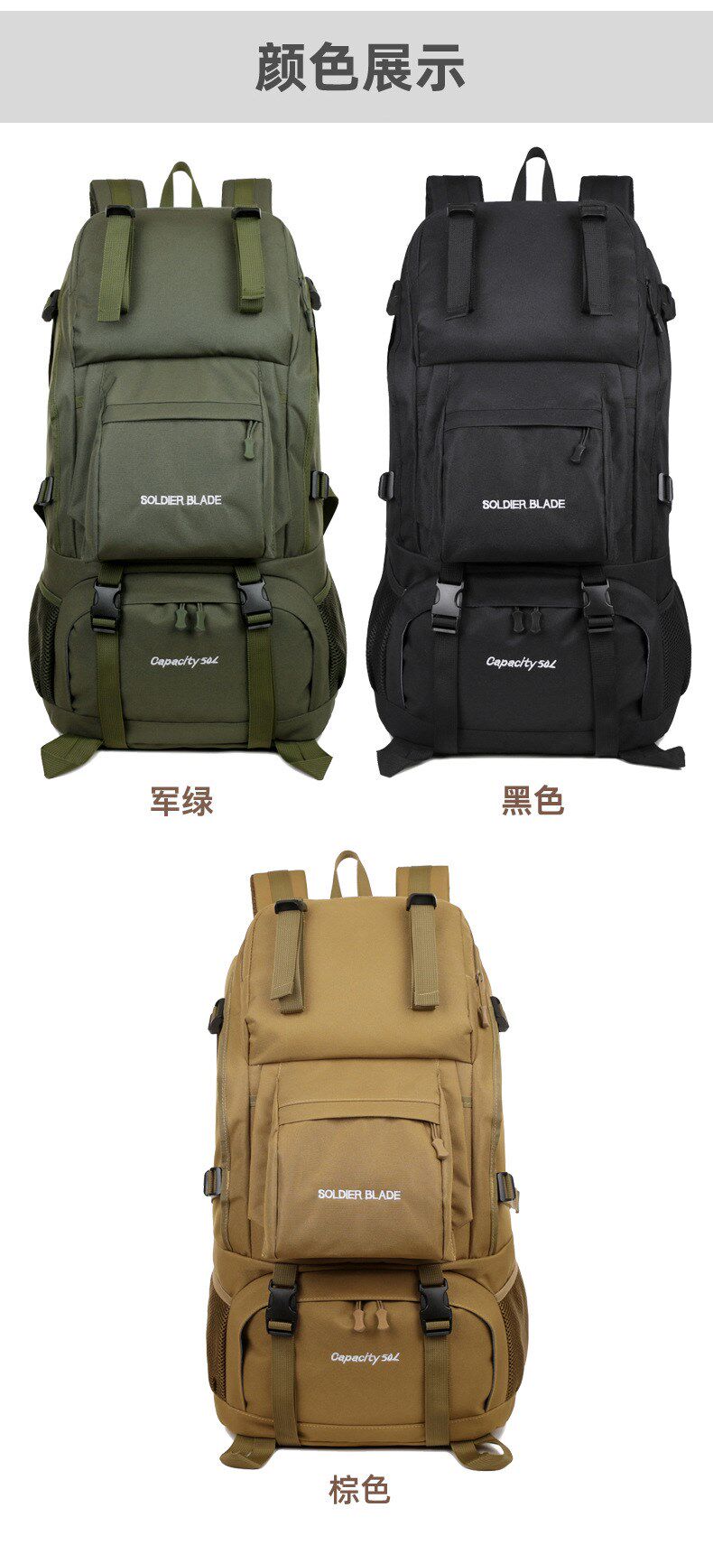 Dark Khaki, 50L, Black, 50L, Army Green, 50L